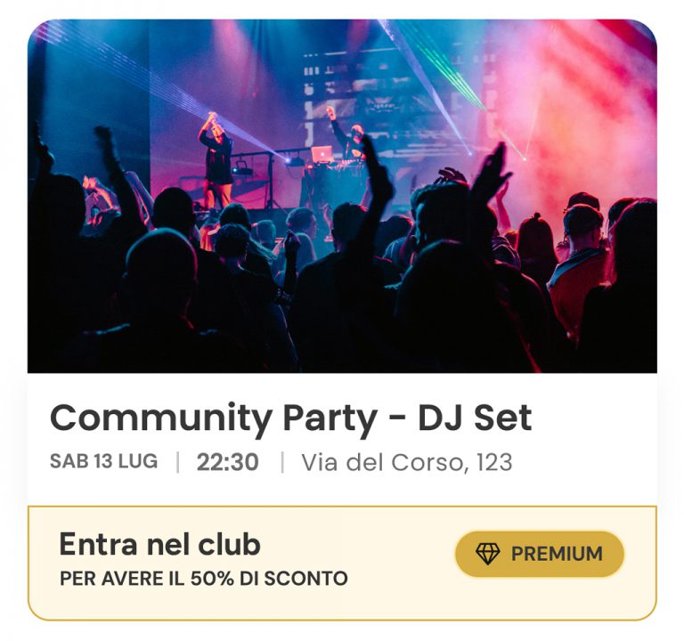 Gli eventi escono con un countdown. I membri del Club saltano la fila: possono prenotare 3 ore prima del resto della community.