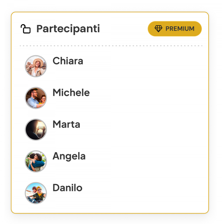 Conosci l’energia di un evento già prima di entrarci. Scopri chi partecipa, chi potresti incontrare, a chi potresti connetterti.